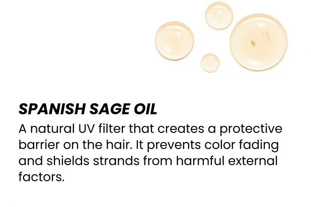This conditioner is your personal shield, designed to protect color and intensely regenerate strands after salon treatments. Key Spanish Sage Oil creates an invisible film on the hair to protect against UV radiation, while Aloe Juice deeply hydrates and amplifies shine. A wealth of vitamins in Avocado Oil combined with the elasticizing properties of Jojoba Oil strengthen the hair without weighing it down. The formula is completed by Squalane, which rebuilds the lipid barrier and provides essential heat protection.